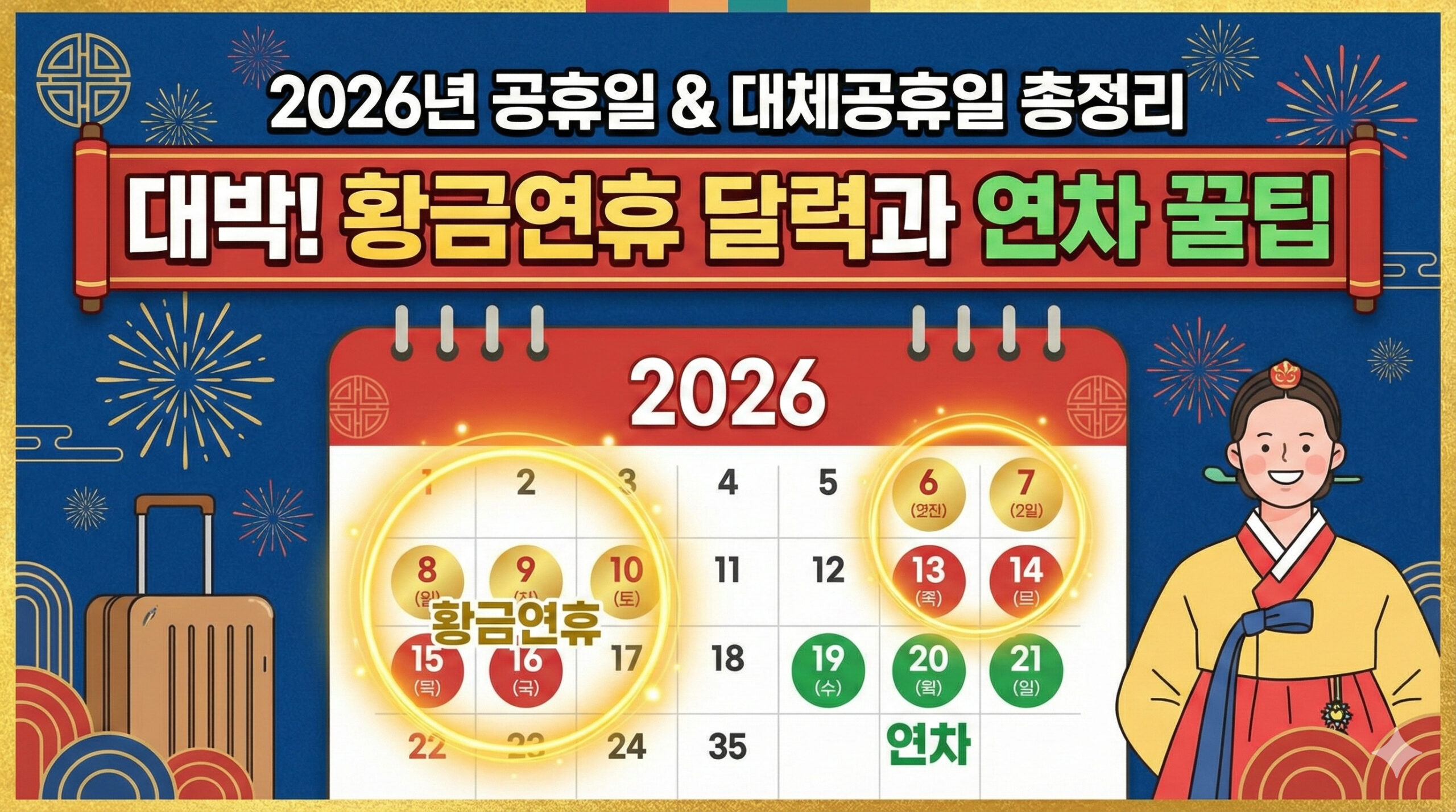 2026년 공휴일 및 대체공휴일 총정리: 황금연휴 달력과 연차 쓰기 좋은 날 (대박 연휴)
